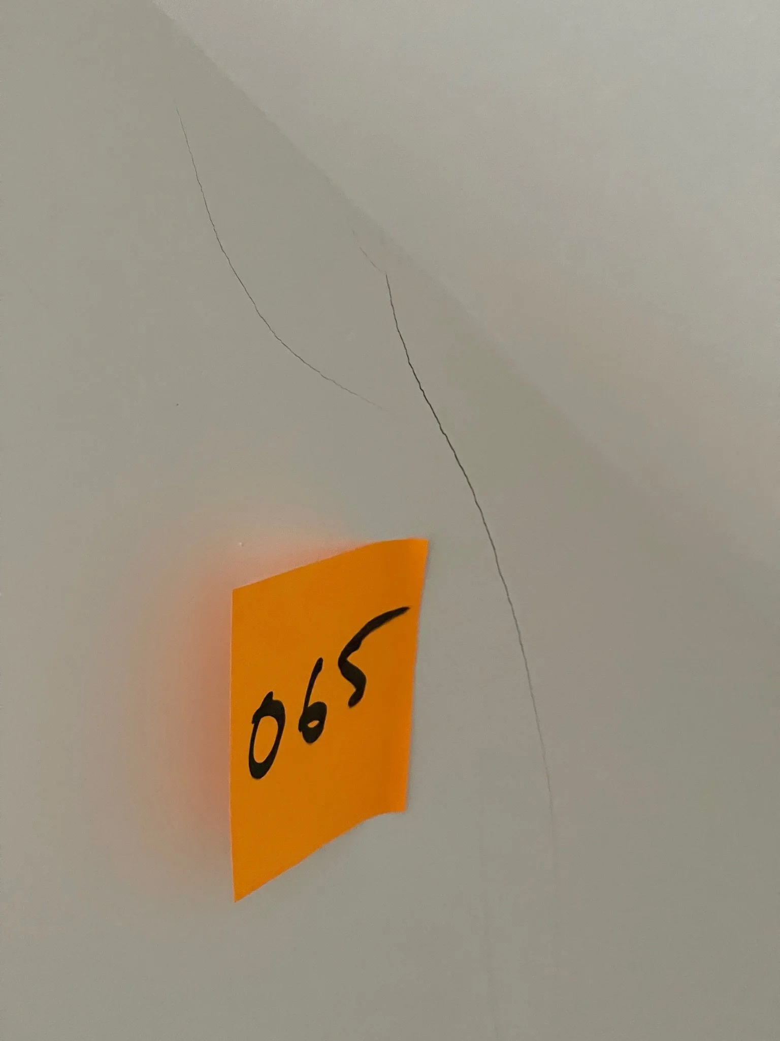 Wall crack with orange sticky note labeled 065