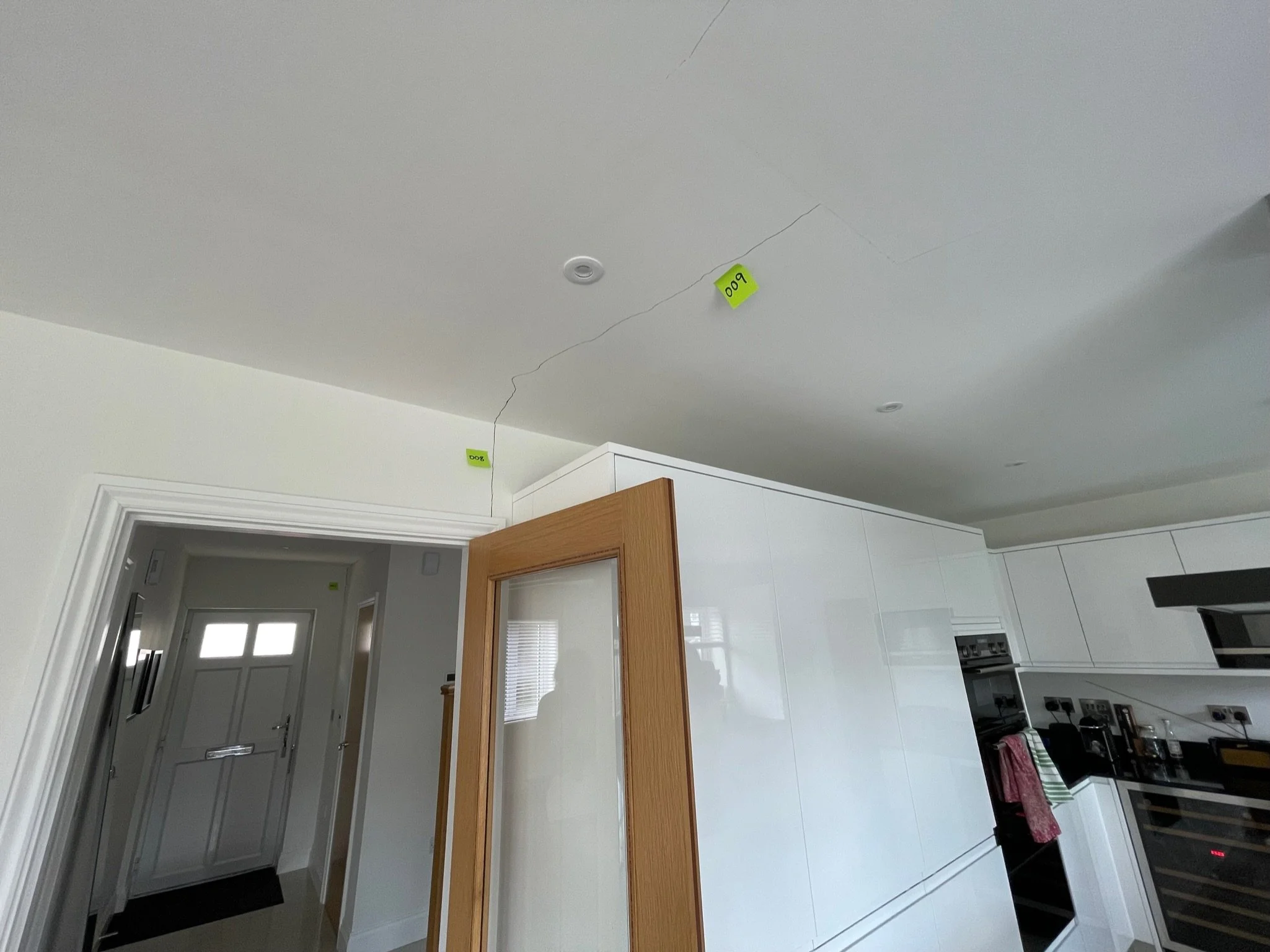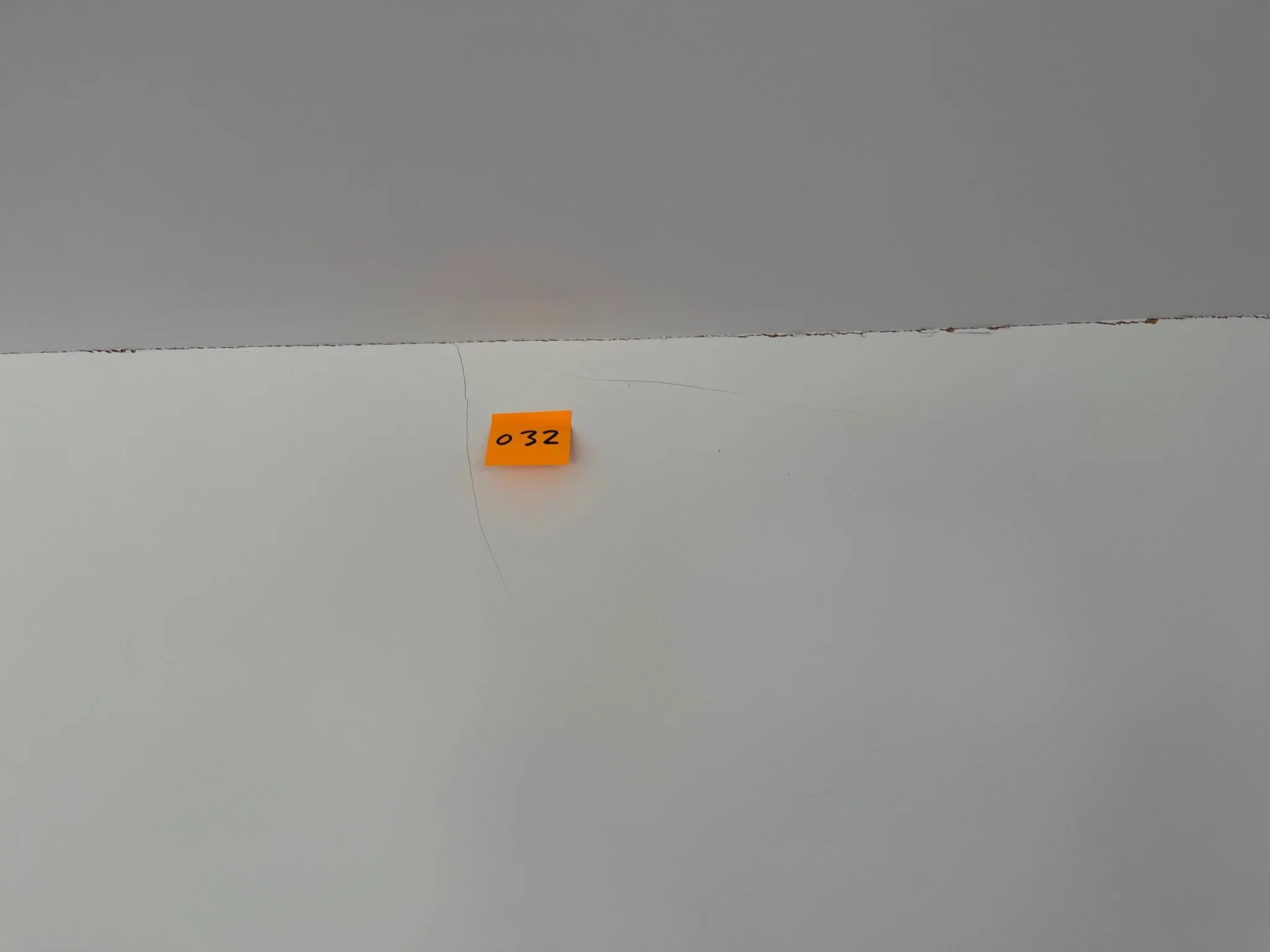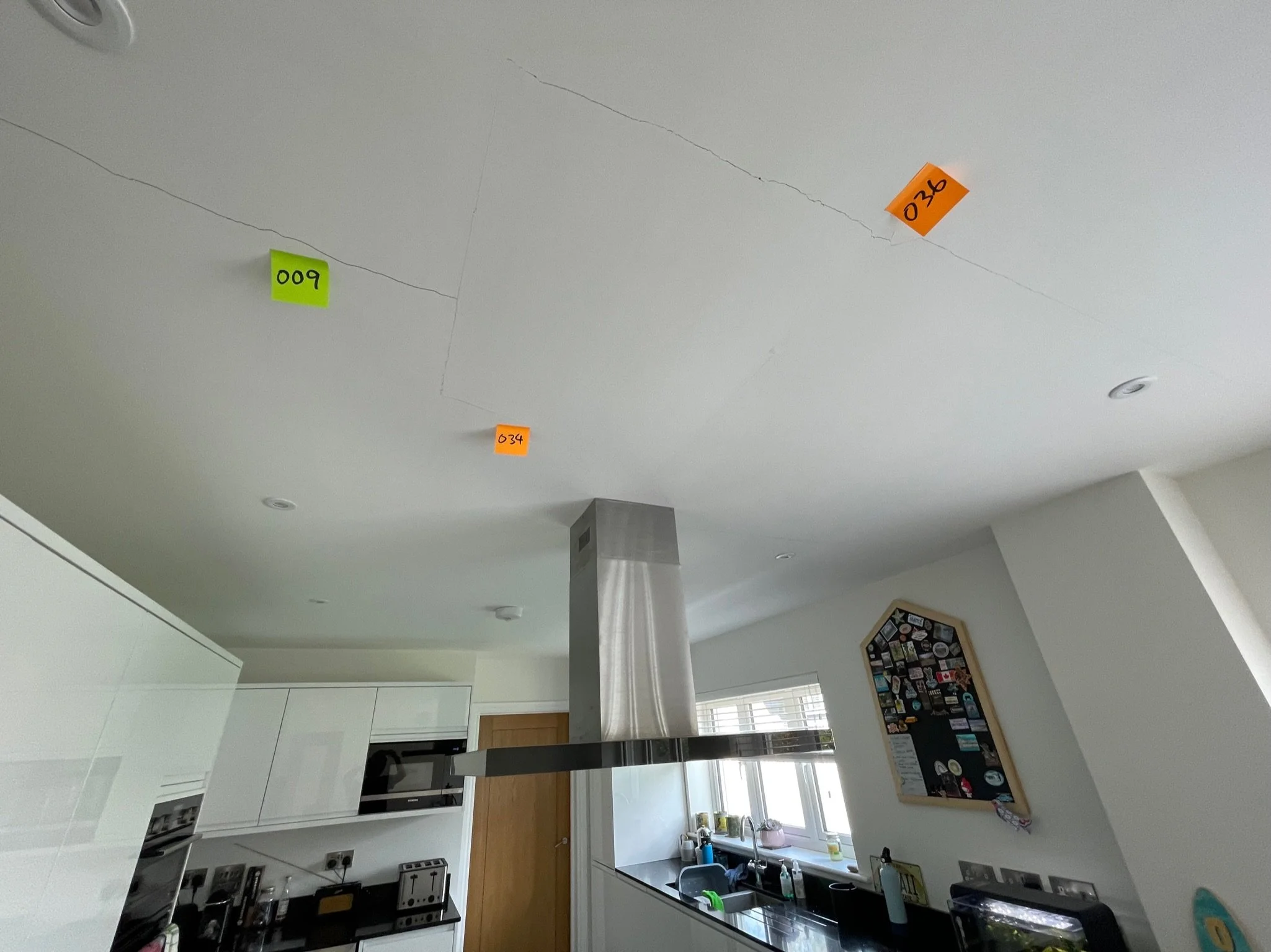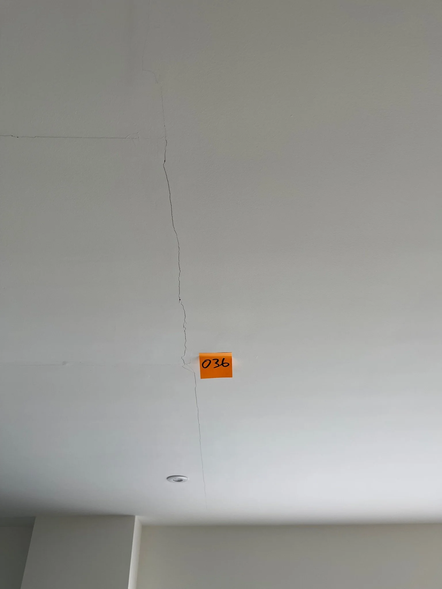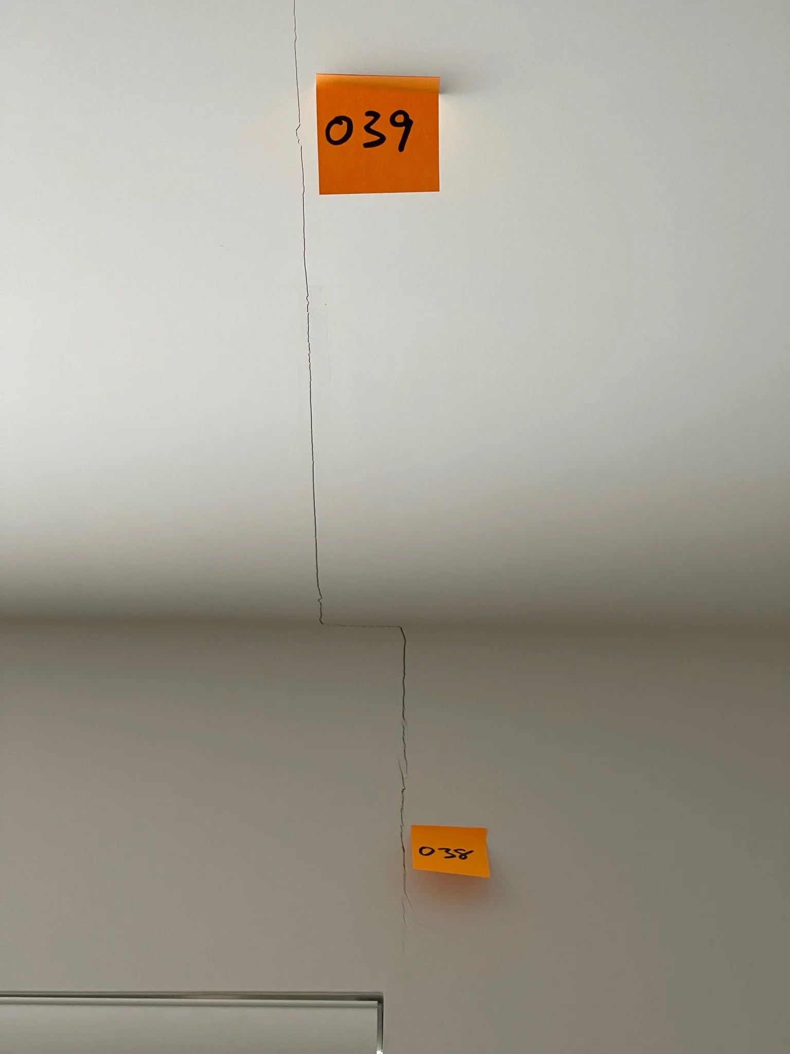 Cracked white ceiling with orange note labeled '038' near the crack.