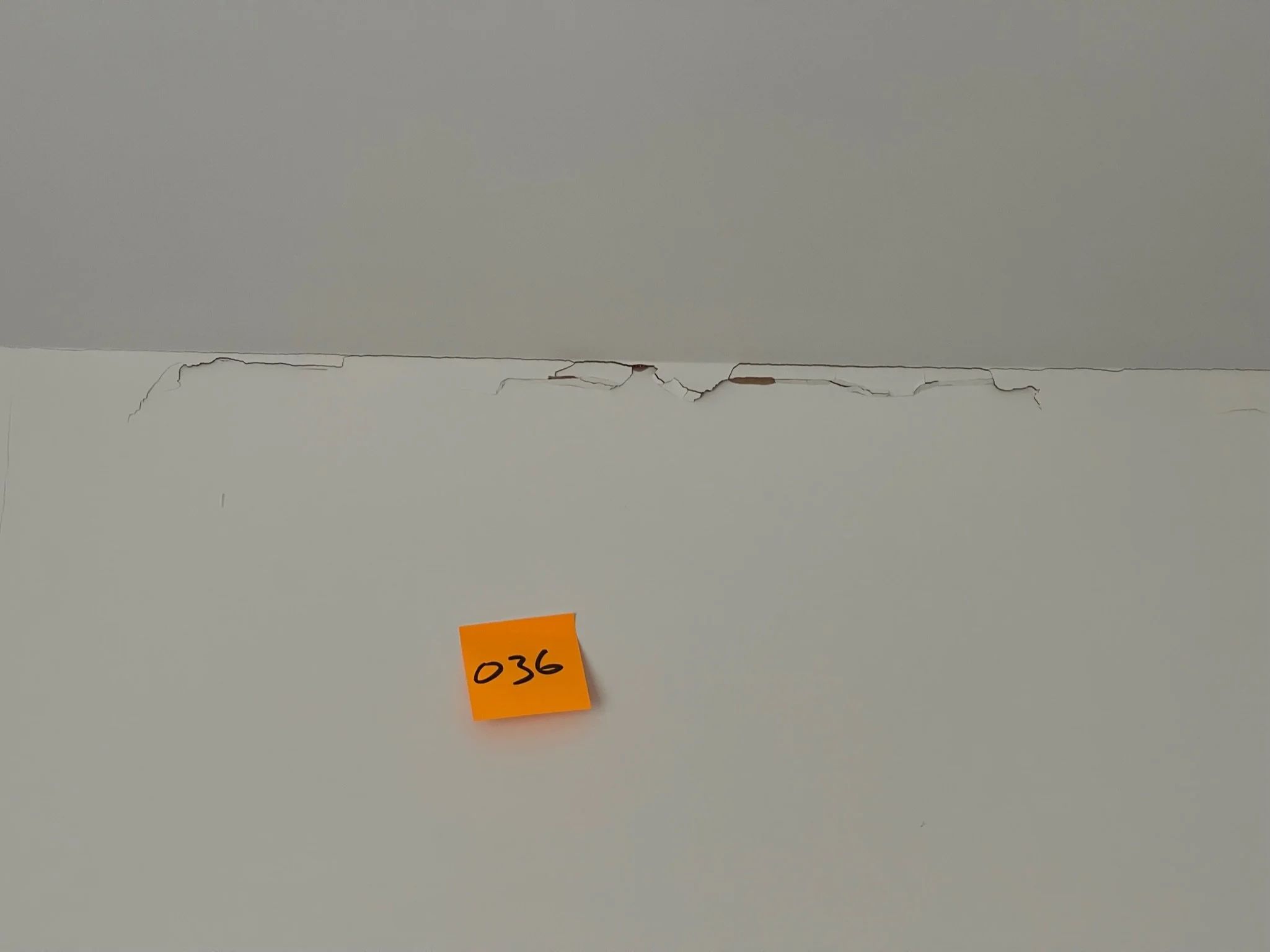 Cracked wall with an orange sticky note labeled 036.